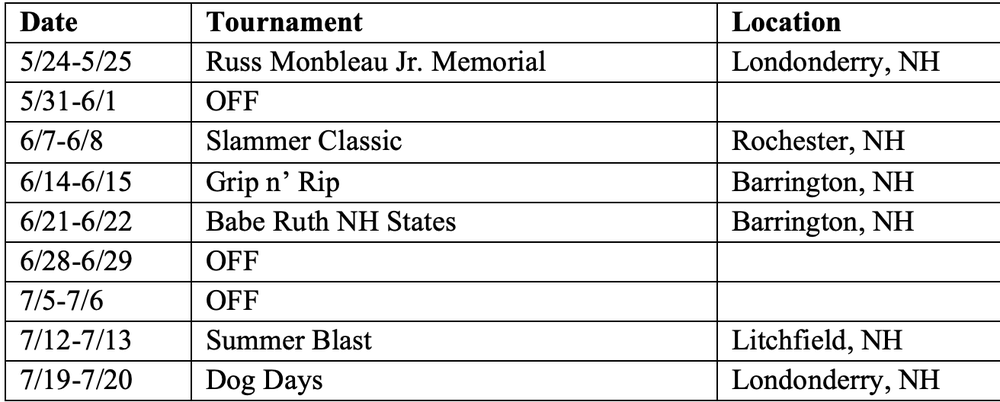 2025 Tournament Schedule